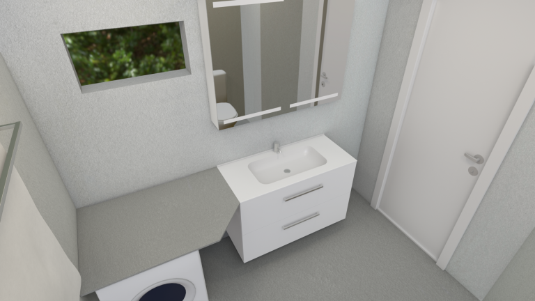 Reovering samt obyggdnad av badrum, i detta fallet med microcement som ytlager där materialets nyans och textur lades in för att kunna demonstrera slutresultatet.